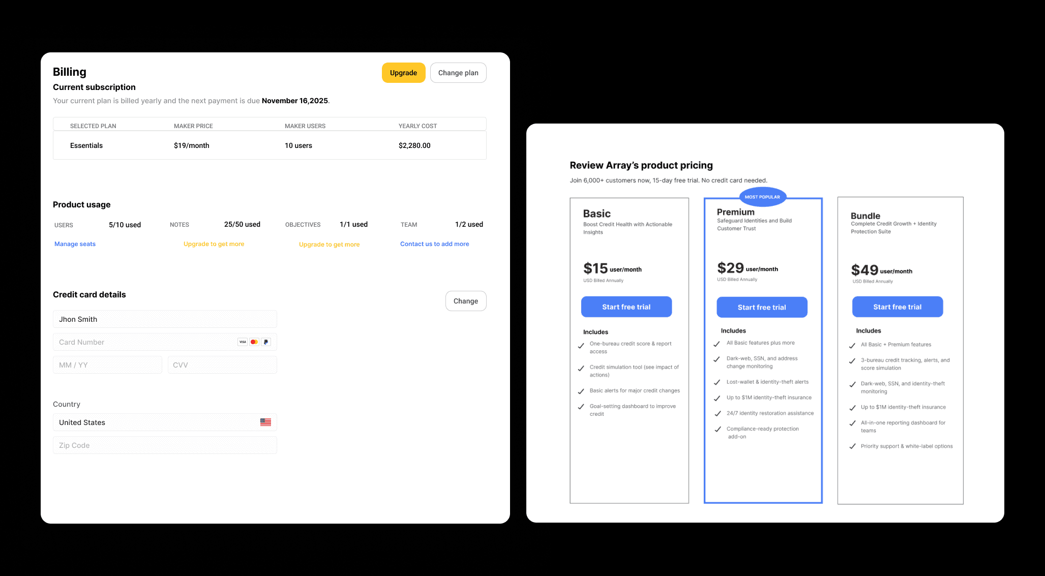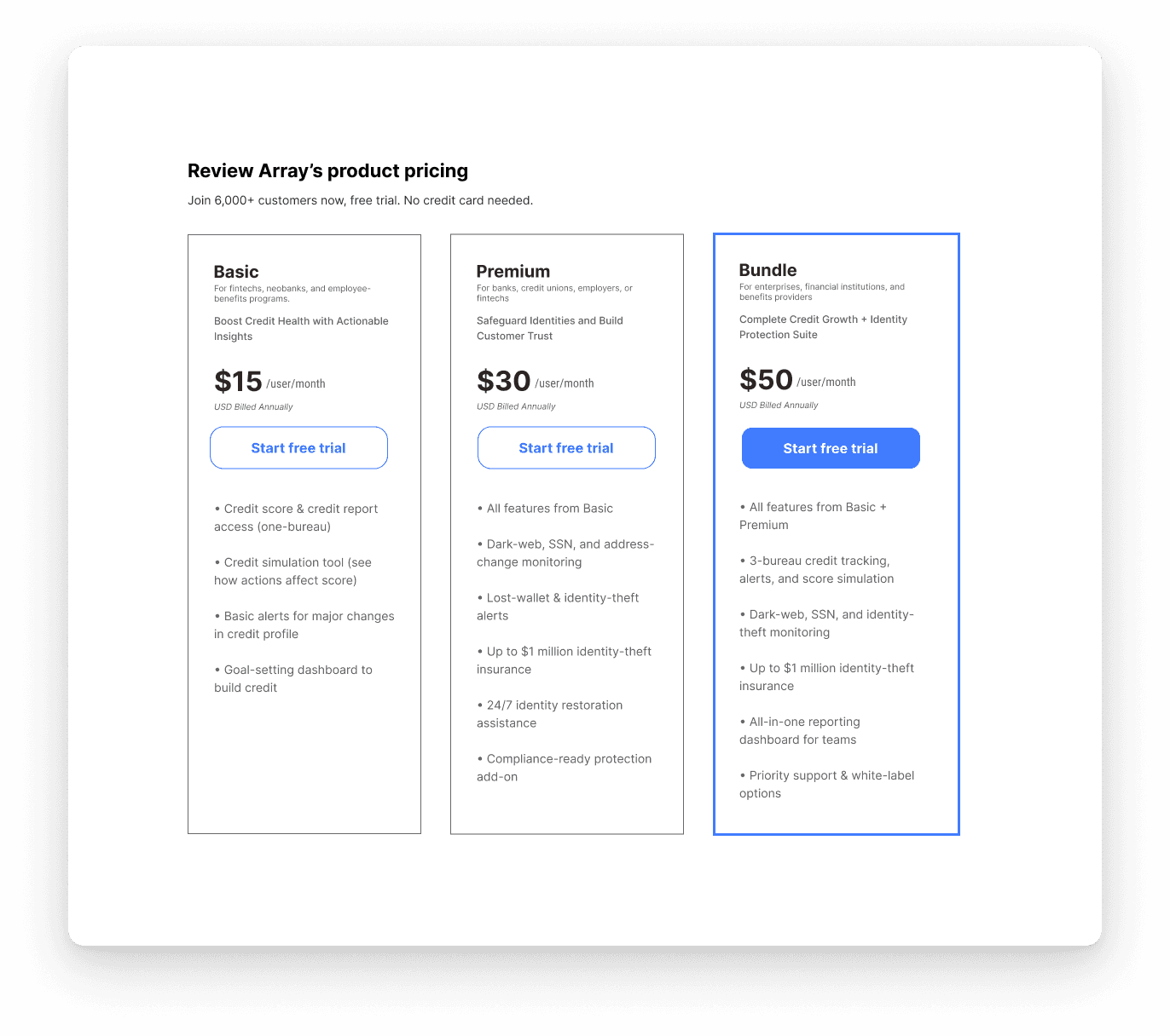 Array offered three plans: Basic, Premium, and Bundle. But most of the meaningful features were locked behind higher tiers.