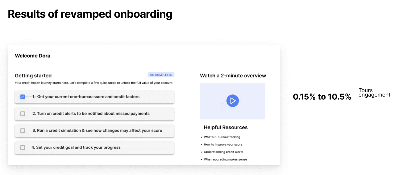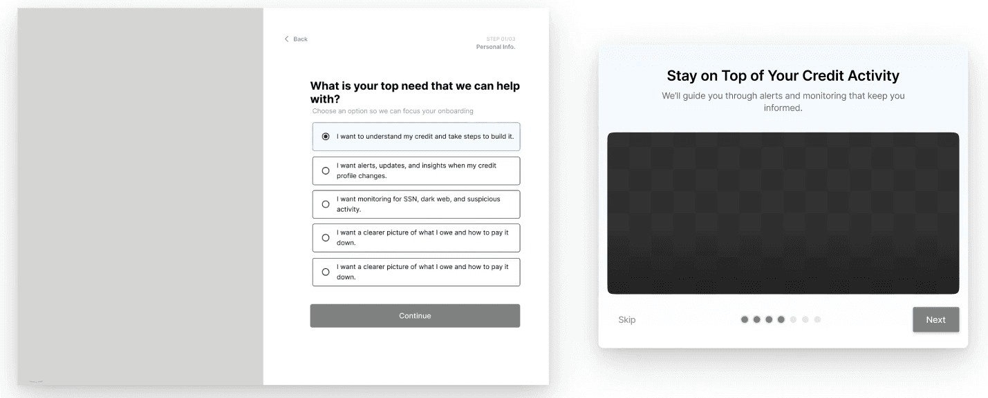 For next steps, I explored the idea of a more personalized product tour. During sign-up, users would answer a few quick questions about their top needs, allowing the onboarding experience to adapt and highlight the features most relevant to them.