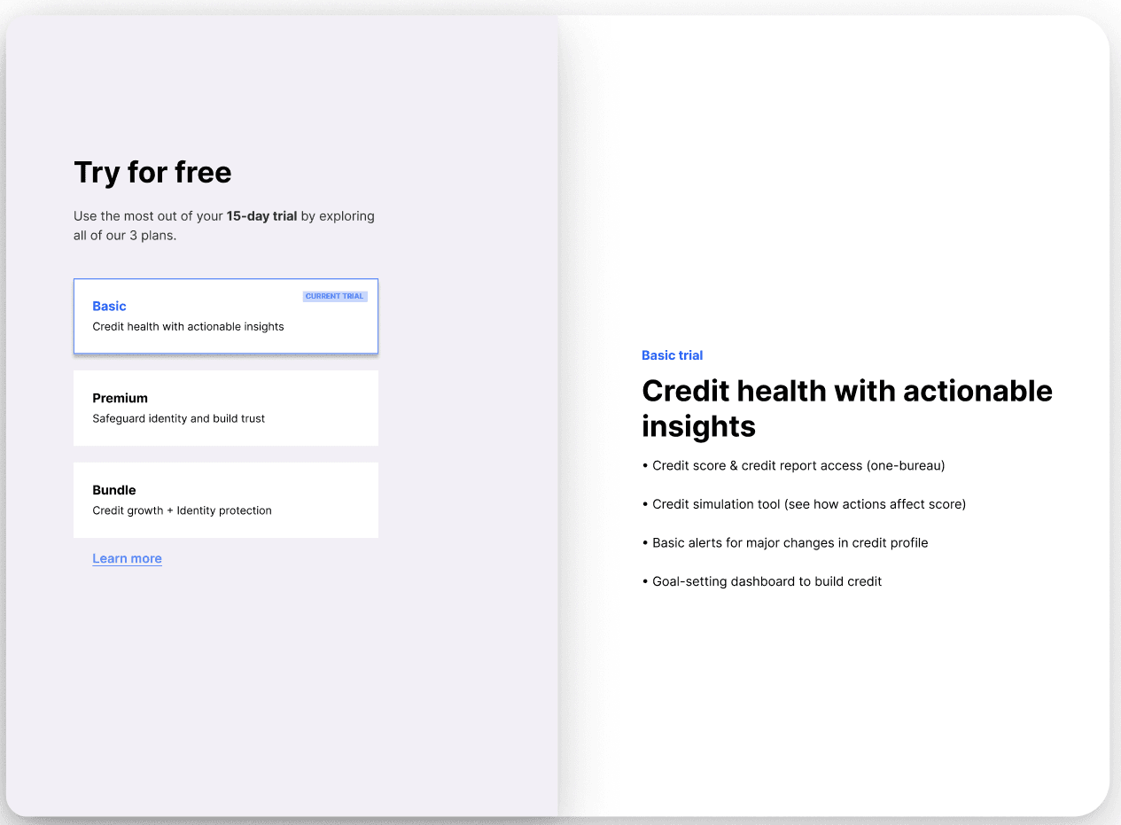 The original idea was that users would start on Basic and move to Premium or Bundle through buttons on the homepage or main navigation. In reality, these options weren’t obvious, so users often missed the chance to explore higher-tier plans.