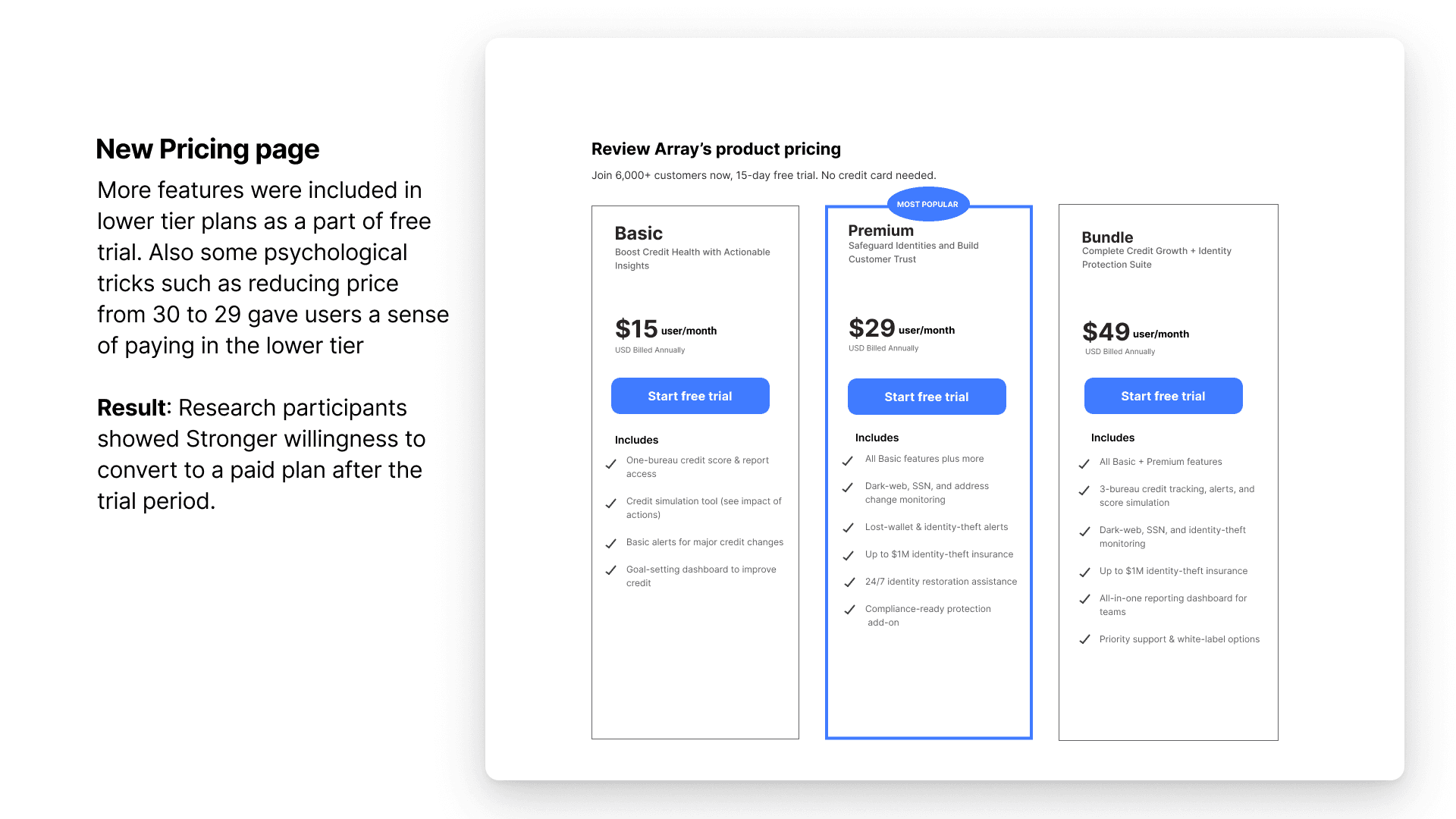 Restructured pricing experience to improve adoption, conversion, and long-term retention.